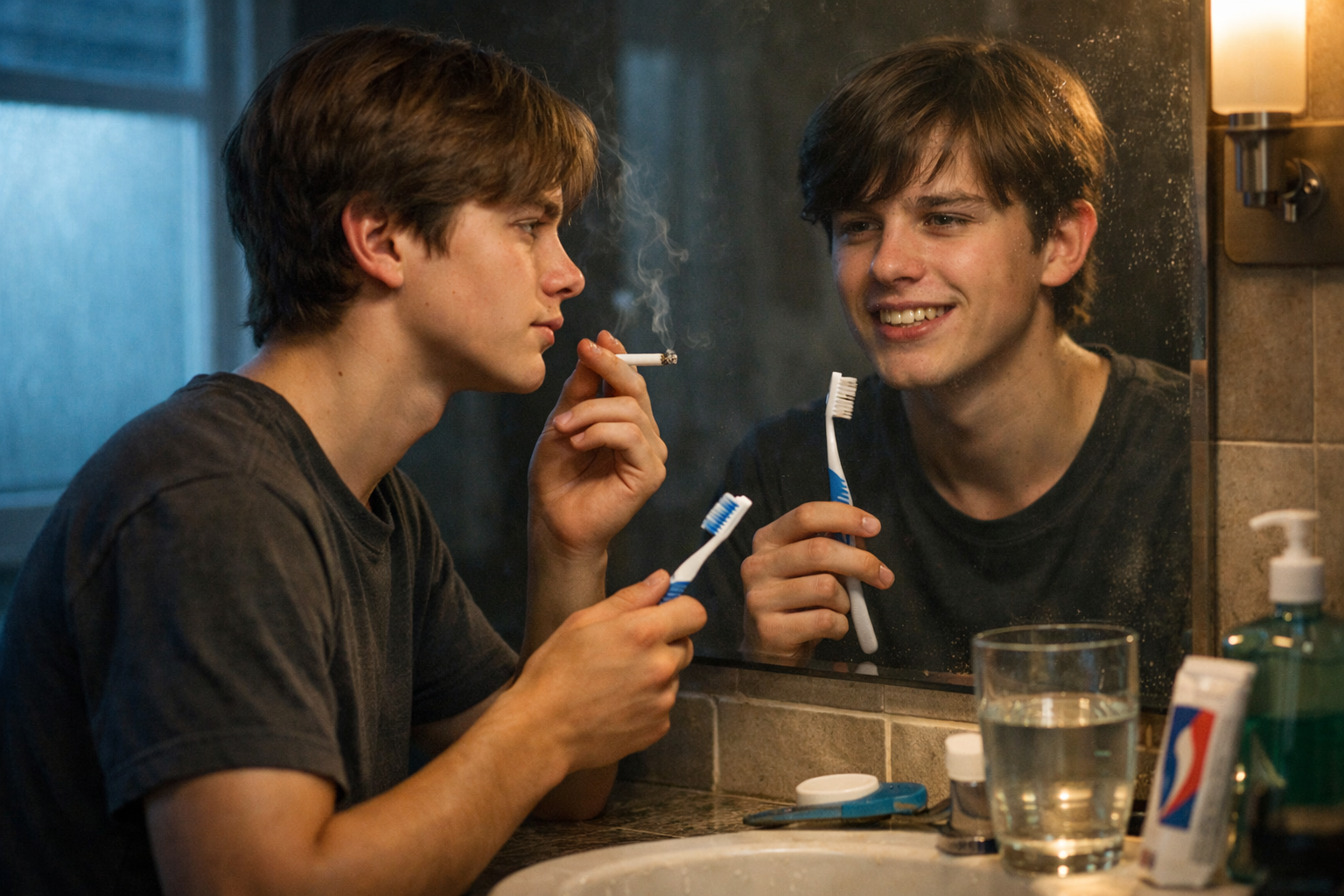 The toothbrush supports the habit.