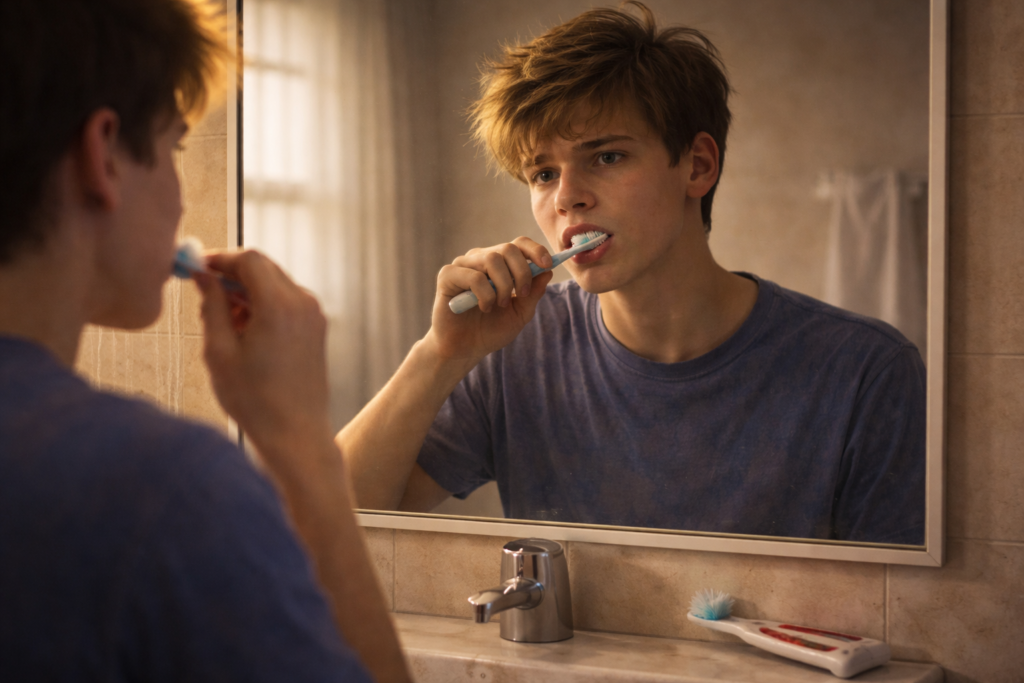 It felt logical in a strange way. If something is dirty, you scrub it harder. That’s how you clean dishes, stains on clothes, even muddy shoes. So I carried that same mindset into brushing my teeth. Every morning and every night, I would grip my toothbrush tightly and move it back and forth with determination, convinced I was doing something good for myself.
